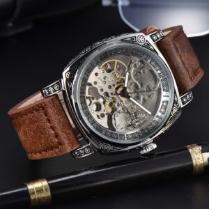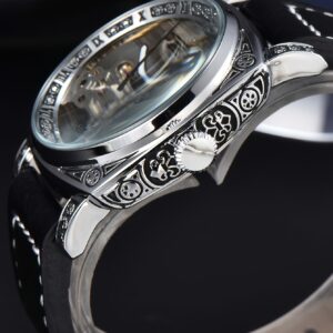 Product SpecificationsMateriale del cinturinoPelle sinteticaMateriale della cassa dell’orologioLega di zincoStileBusinessMeccanismoOrologio meccanico