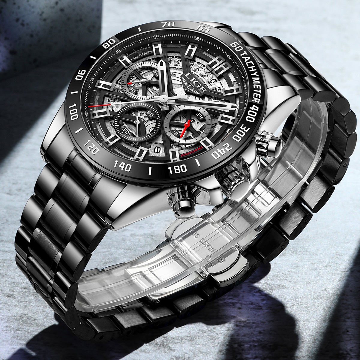 Orologio da Uomo Multifunzione in Acciaio Inossidabile con Cronografo, Movimento al Quarzo Analogico/Digitale